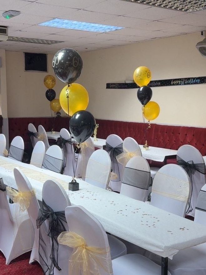 We offer everything from elegant balloon stacks and weighted helium arrangements to luxurious balloon arches and full venue décor. This includes table decorations, tablecloths, LED numbers and letters, chair covers and bows, and even table scatter decorations for the finishing touch.